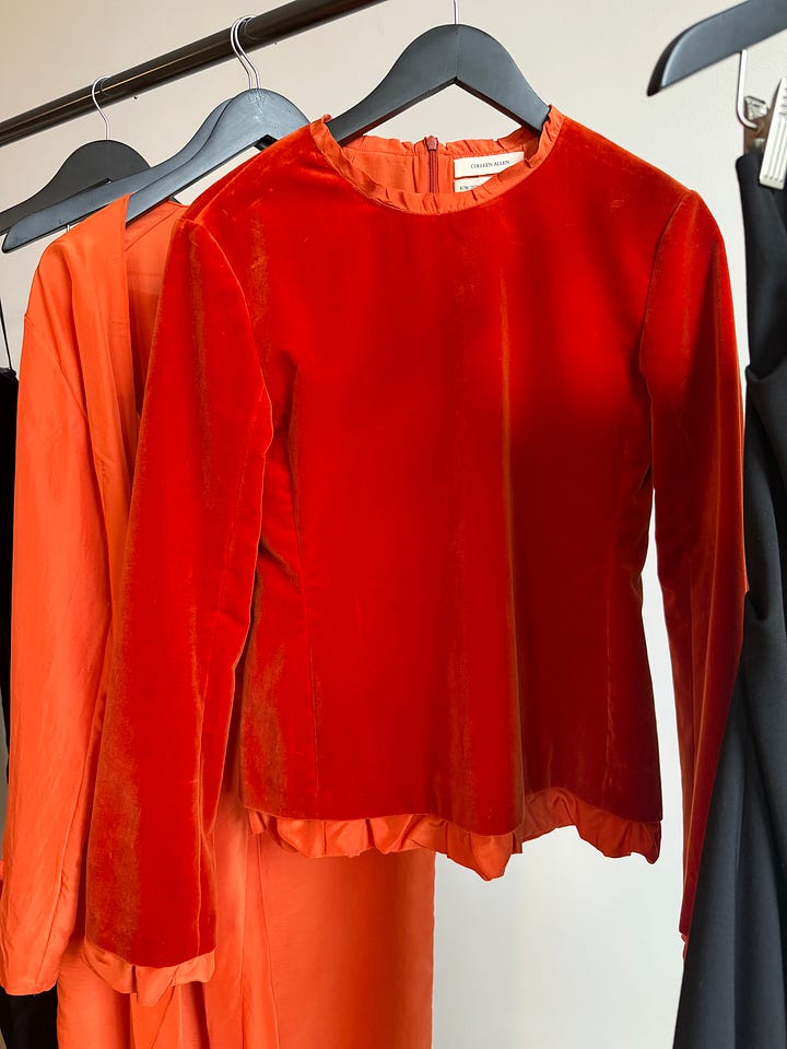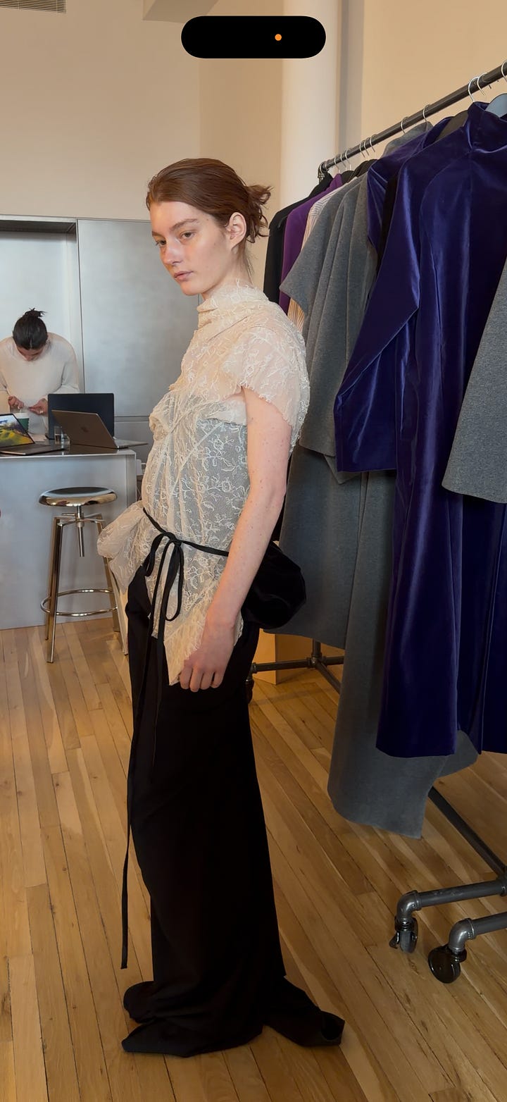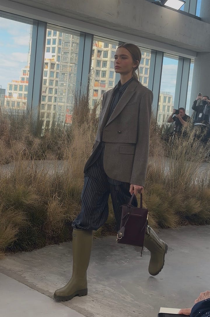 favorites from OSSOU, TWP And by Wed afternoon, NYFW was in full swing. Some wins— my schedule is much lighter than my friends, i’ve been micro-dosing a prescribed beta blocker, and i haven’t felt anxious once. At OSSOU, sensuality is back. At TWP, i felt a serene joy— wellies mixed and layered with structured blazers and silky sets (felt v Pamela Anderson at her farm). Generally, the looks felt lived and alive. I spotted martha stewart, chatted w/ chloe malle (who has read TM ! wow !), found joy ensconced in Jess Graves’s presence, and had the best catch up with my seatmate Hadley Greene <3. At Colleen Allen, the vibes were perhaps the most Fashiony (in the canonical sense) of all.