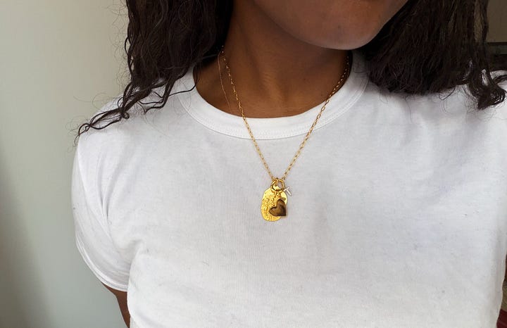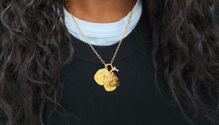 The sisterhood pendant, which felt old world in that antique coin way, while also feeling sentimental (representing my baby sister who is my best friend in the world)
