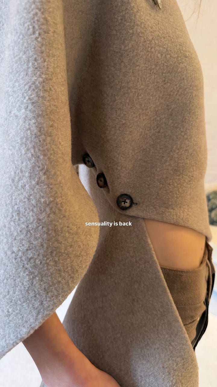 As such, I’ve been thinking a lot about the universe of EIHG over the past month-ish, especially as more people join our community (welcome! i love U!). And i think my favorite thing about EIHG culture is the foundational basis that she can do whatever the fck she wants. It may not make sense to you, but it does to her, and nothing else really matters past that, does it? There’s an element of freedom that emits (freely) when you’re embodied that way— it’s alluring and magnetizing and captivating and if you’re attuned to it, suffocatingly HOT. I want even more of that on TM this year.